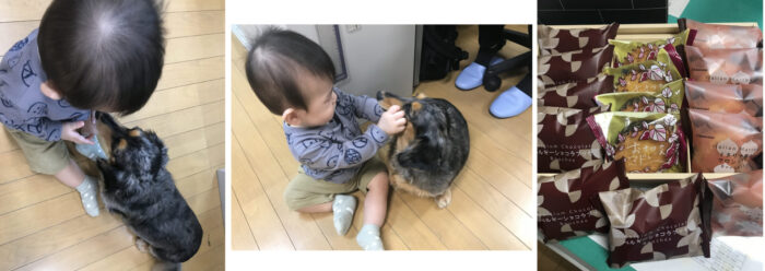 可愛いお客様👶 part.3 モモちゃん🐶と初対面 2024年9月24日2021年10月11日 可愛いお客様が来てくれました♡ すっかり人見知りもなくなり、初ワンちゃん(モモちゃん)と 仲良く触れ合ってました。 秋らしいお菓子もお土産げに持ってきていただき、 ほっこりした時間を過ごすことができました。