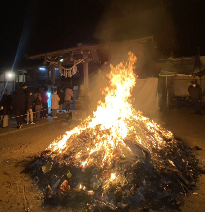 ご近所の『多賀神社⛩』に正月飾り、お札など焼納してきました。