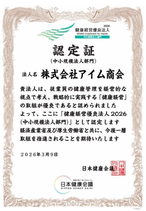 株式会社アイム商会は、経済産業省の「健康経営優良法人2026」に認定されました!