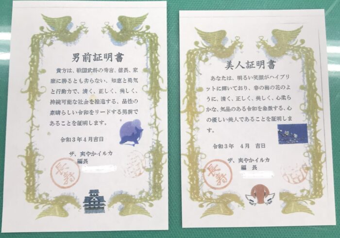 「男前証明書」「美人証明書」