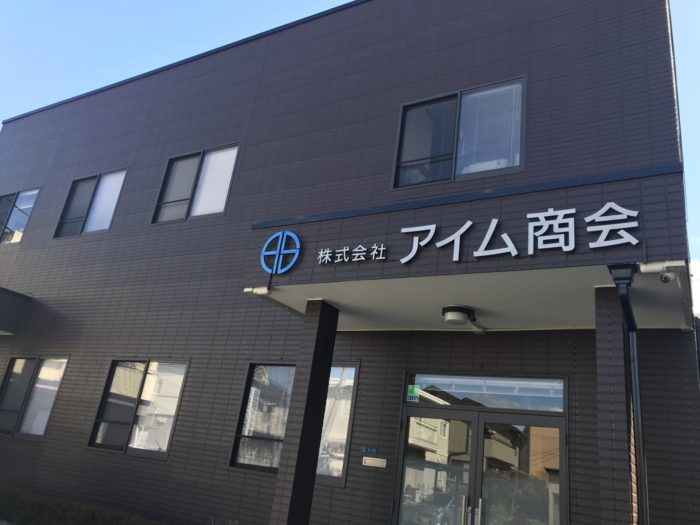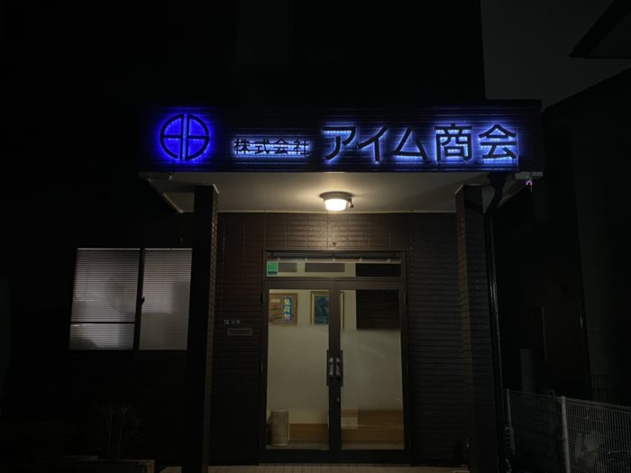 社名は夜になるとほんわか光るよう、LEDを入れ込んだ弊社お手製の力作になってます。