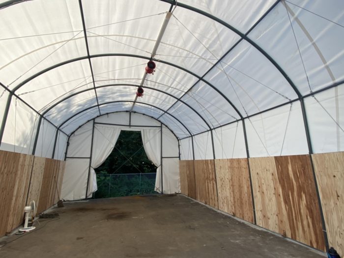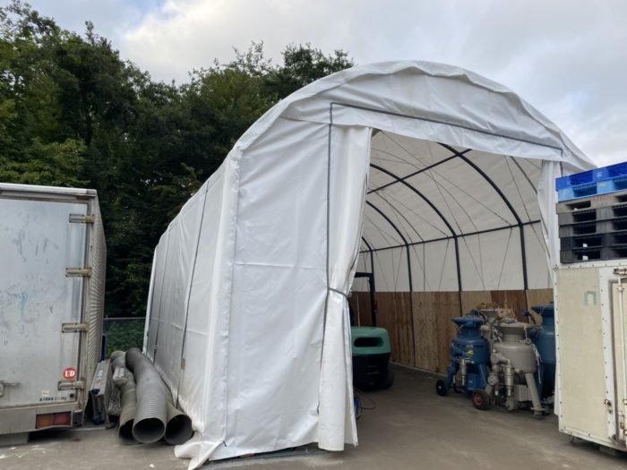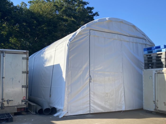 今回は資材を整理しテントを設置しました。