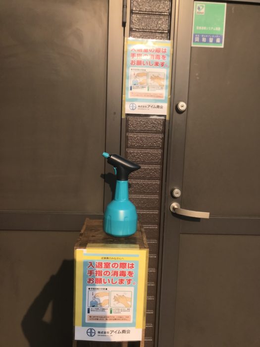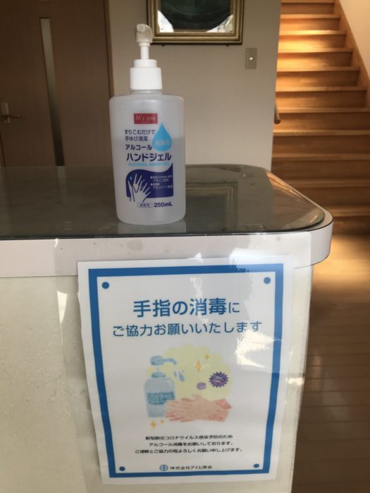 来客の方には手指の消毒にご協力お願いいたしております。