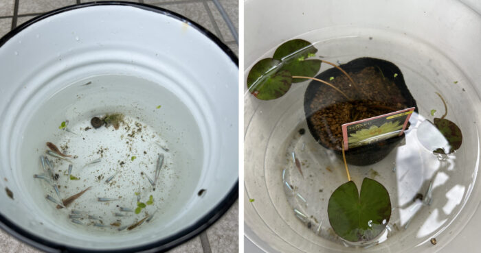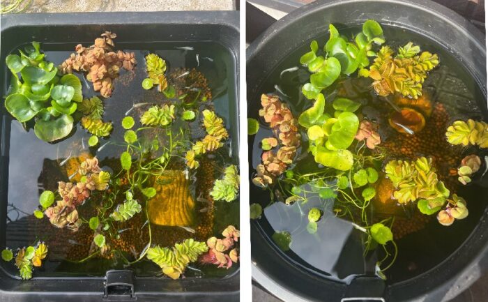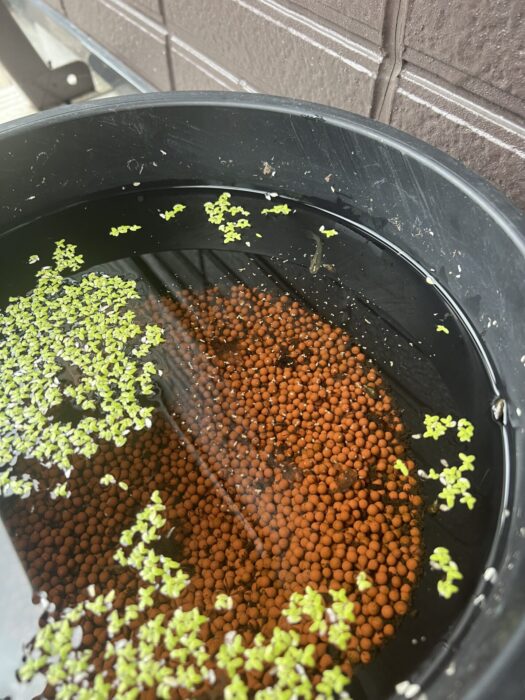 メダカ鉢に浮草追加しました。