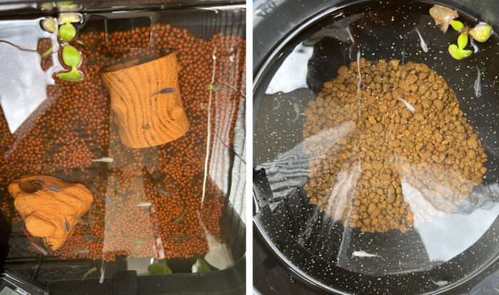 飼育容器をキレイにし数を数えたところ、先住魚25匹→15匹、稚魚10匹誕生、
