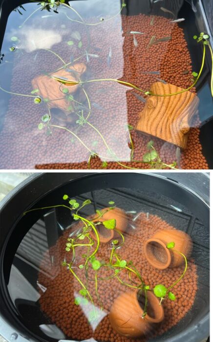 一気におしゃれなメダカ鉢になり、産卵用の準備も整いました。