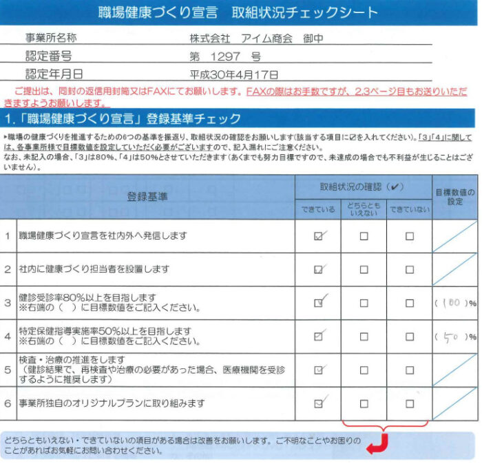 1.定期健診受診率100%の維持、健診日を特定出勤扱いにする