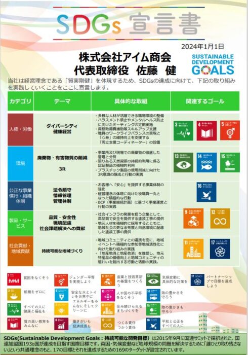 みんなが安全に、安心して働けるよう、以下の項目に取り組むことを宣言してます。