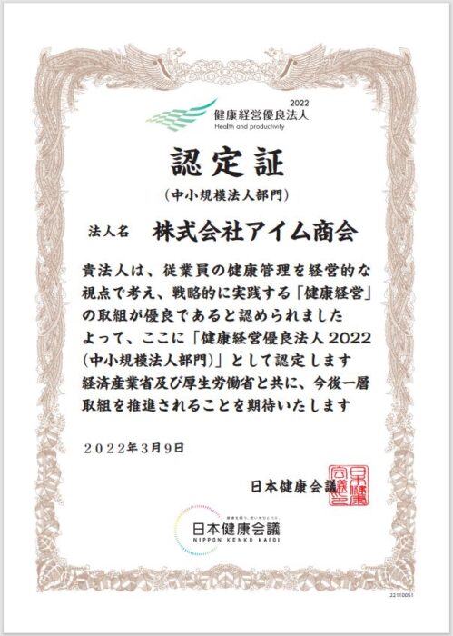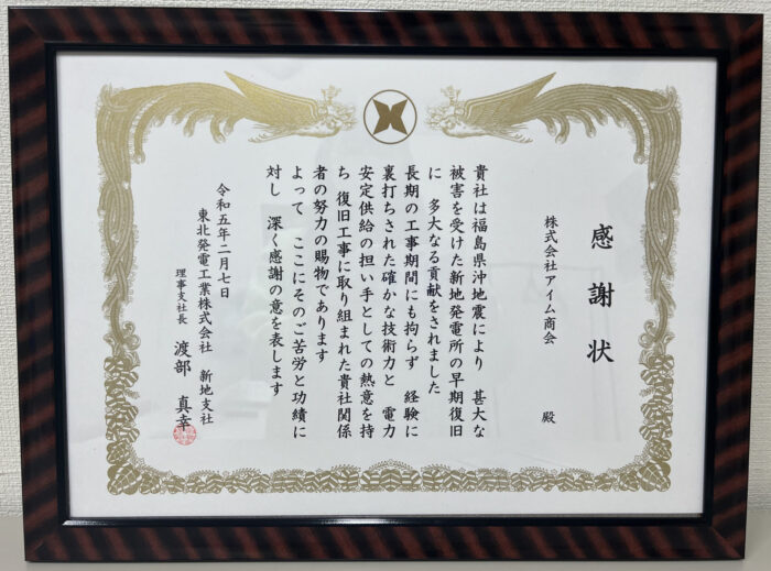 感謝状までいただけて、従業員一同、嬉しい限りです。