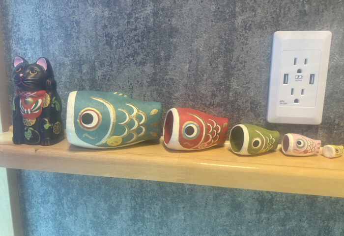 新しく貼った壁紙に鯉のぼり飾ってます。