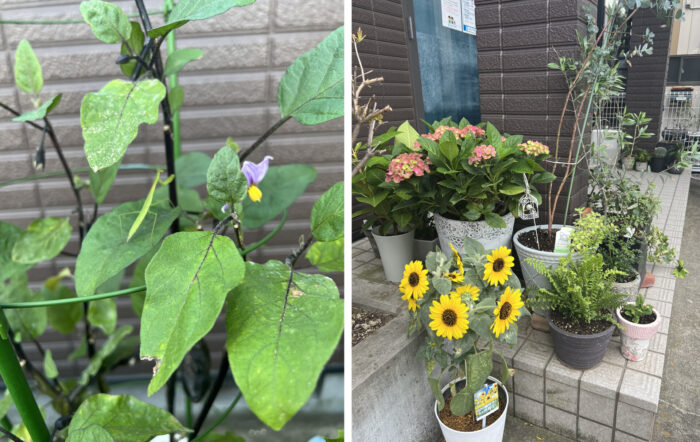 事務所前にはサツキの植込みがあり、一部を耕して毎年何か植えてます。