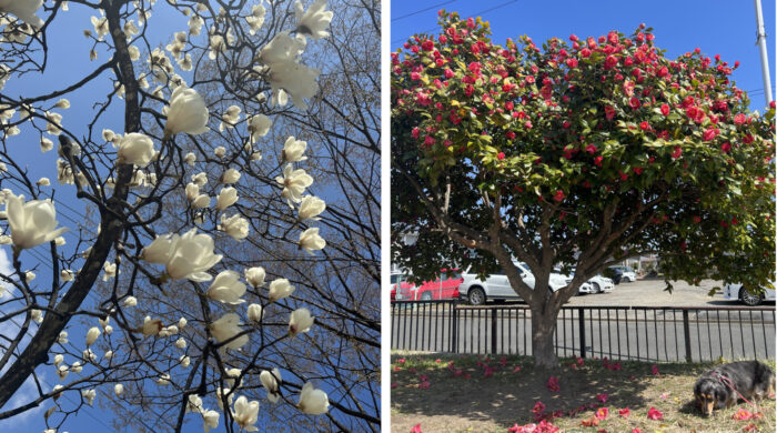 会社の向かいの公園では「白木蓮」と「椿」がきれいに咲いてました。