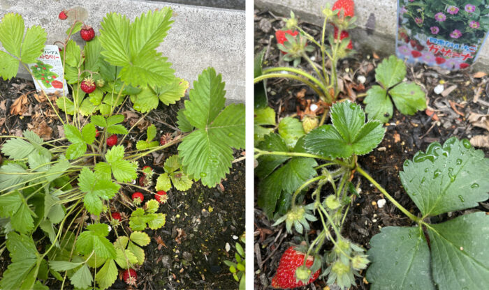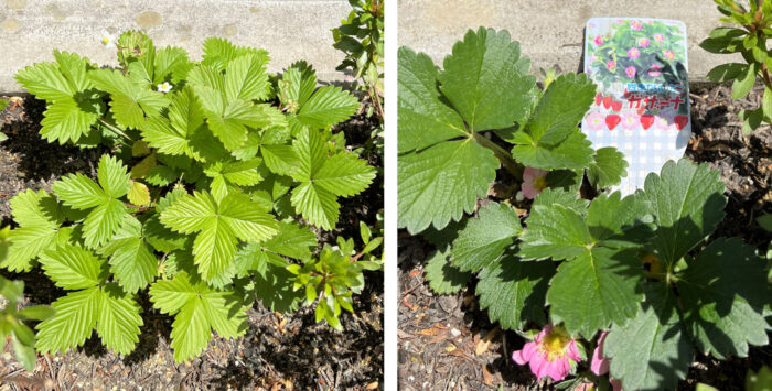 ライトピンクの花(右)は四季なりイチゴのガザーナ?