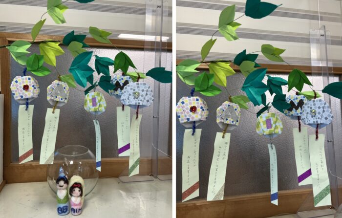 短冊に願い事を書いて、七夕飾りを作ってみました。