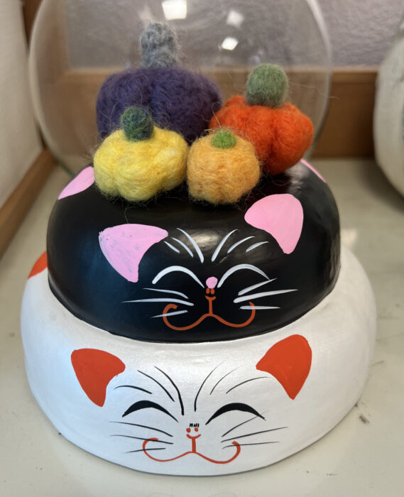今年は「おひなっこや」さんの置物にかぼちゃを乗せてみました。