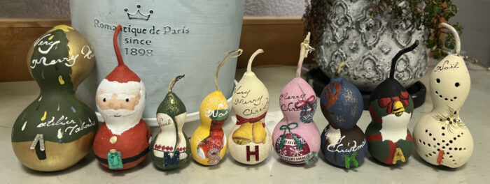春から育てたひょうたんが、クリスマスオーナメントに変身しました!!