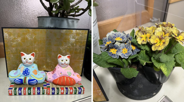 堤人形の「猫ひな人形」、玄関に飾りました、