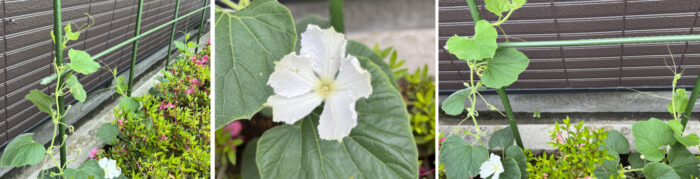ひょうたんの花は思ったより大きく、色も真っ白なんですね、